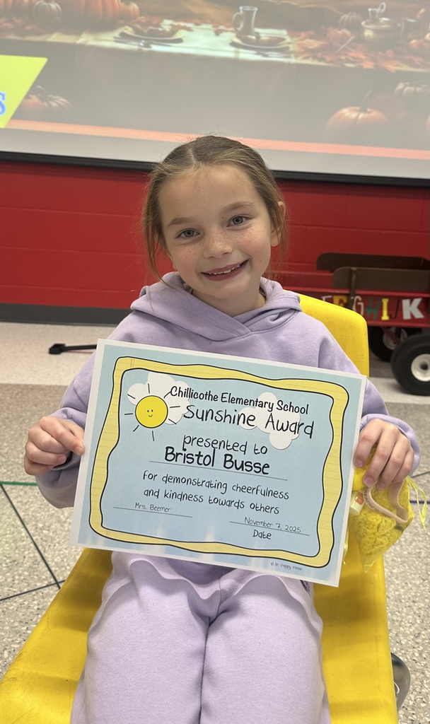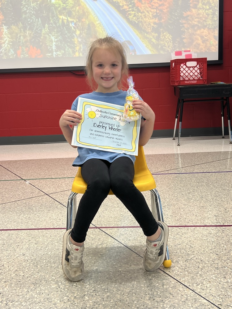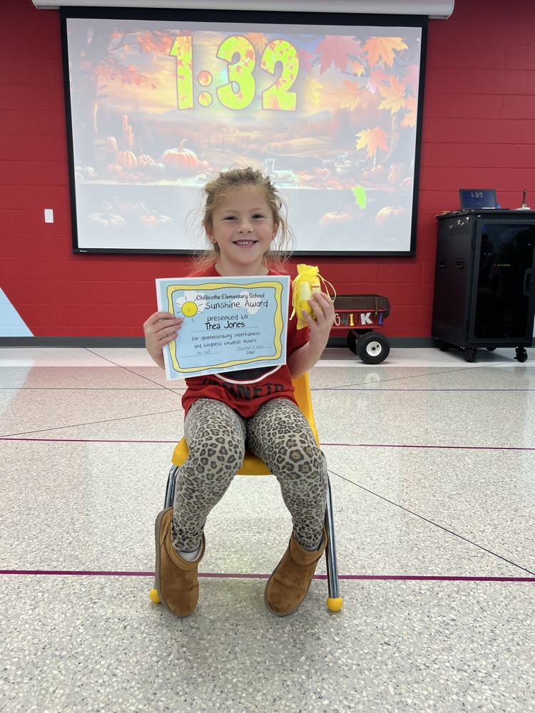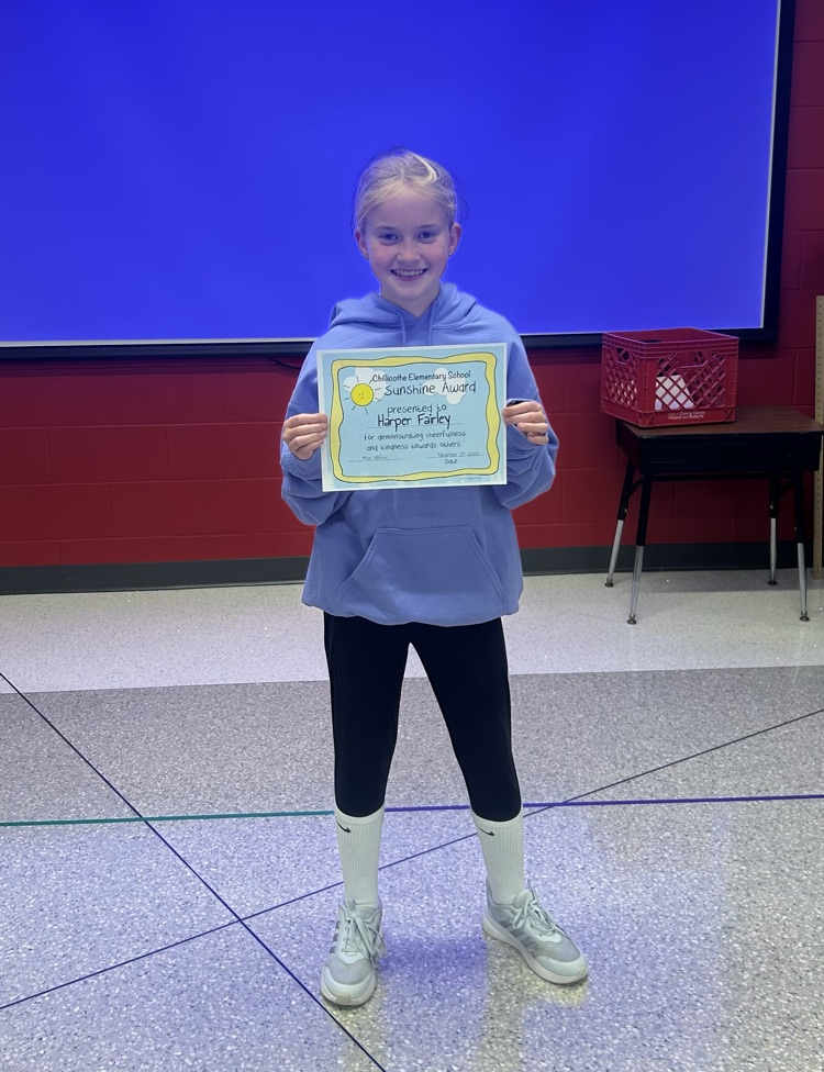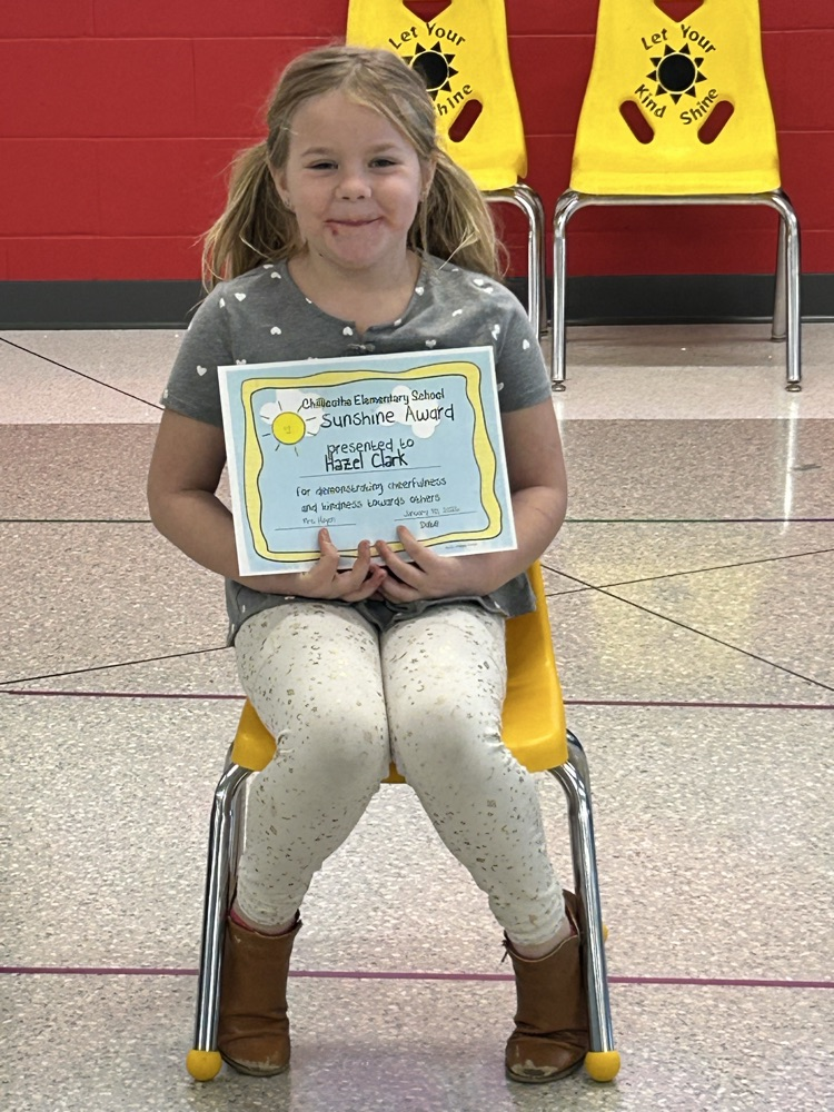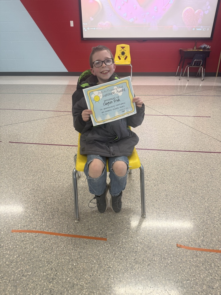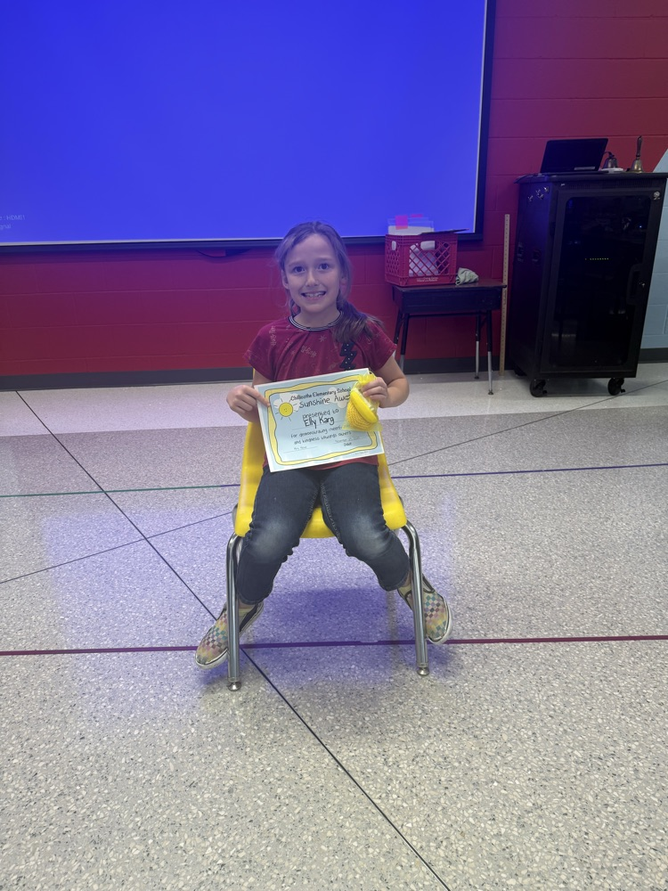 Kindness is everywhere at CES! The three recipients of this week's awards were nominated by a teacher or staff member for showing exceptional kindness. They received a sunshine bag and the opportunity to sit in the yellow sunshine chair over the next week to promote kindness throughout CES!