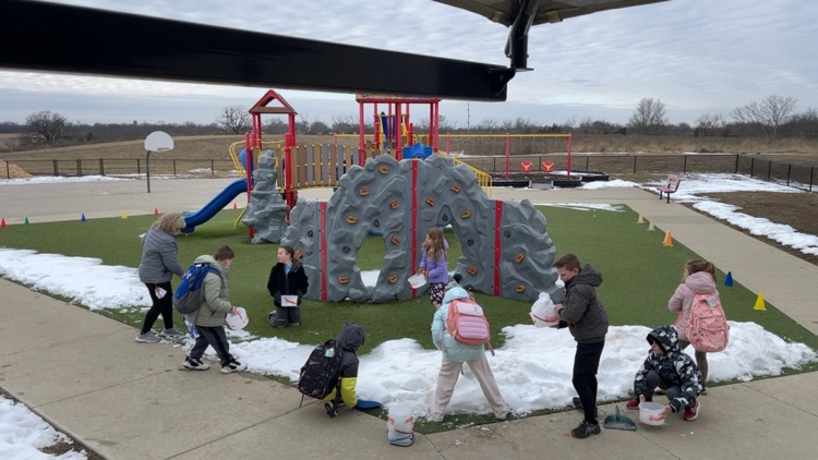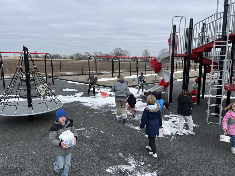 Our hardworking staffulty students teamed up after school to clear snow from the playgrounds for everyone to enjoy! A big thank you to Mrs. Cook and Mrs. Good for supervising our awesome snow crew!