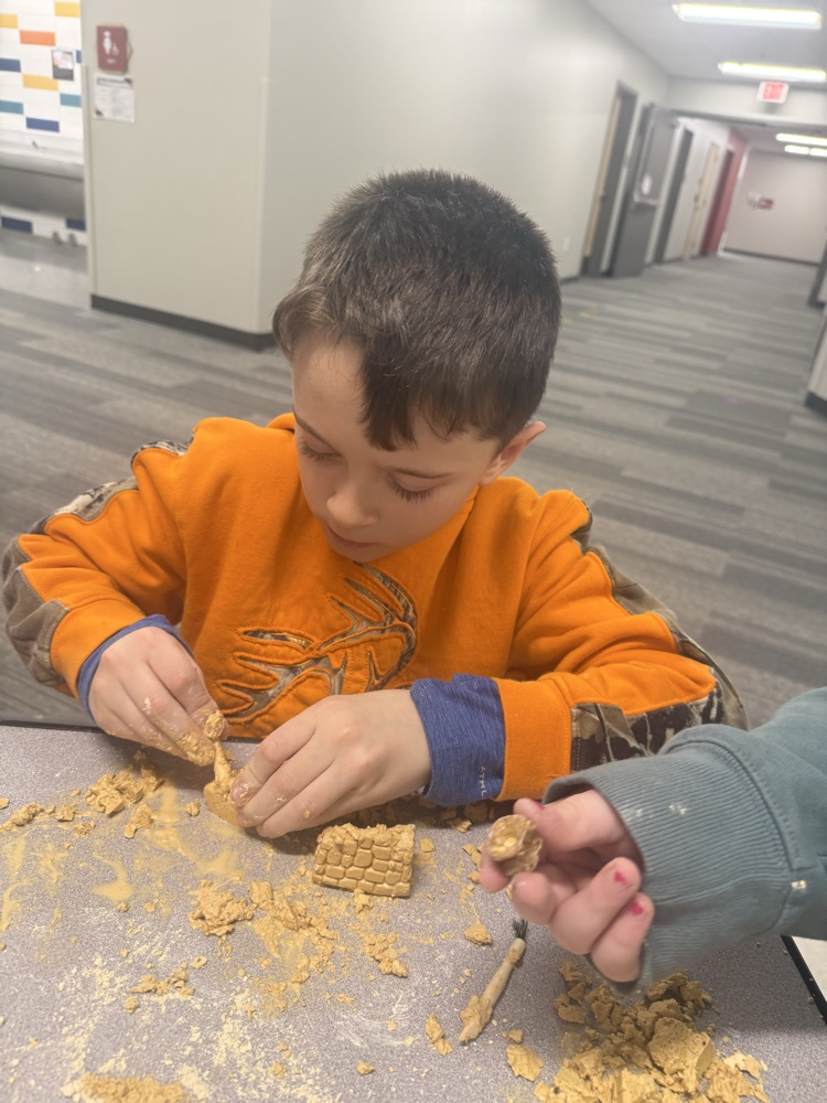 Mrs. Beemer's class had a special visit from Dustin Rennels/Grand River Historical Society Museum their Partners in Education today and learned all about fossils and artifacts from the past! Students became junior archaeologists as they carefully dug through blocks of plaster to uncover one of several different fossils.
