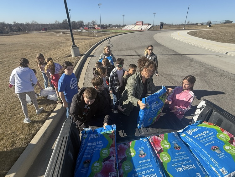 Local Foods Coordinator Tracy Minnis from University of Missouri Extension recently delivered supplies to help our 5th graders get started with raised bed gardening. We are grateful for the generous time and support she has provided. Special thanks to Kleeman Farms for donating the mineral tubs and to Lowe’s for the potting soil donation.