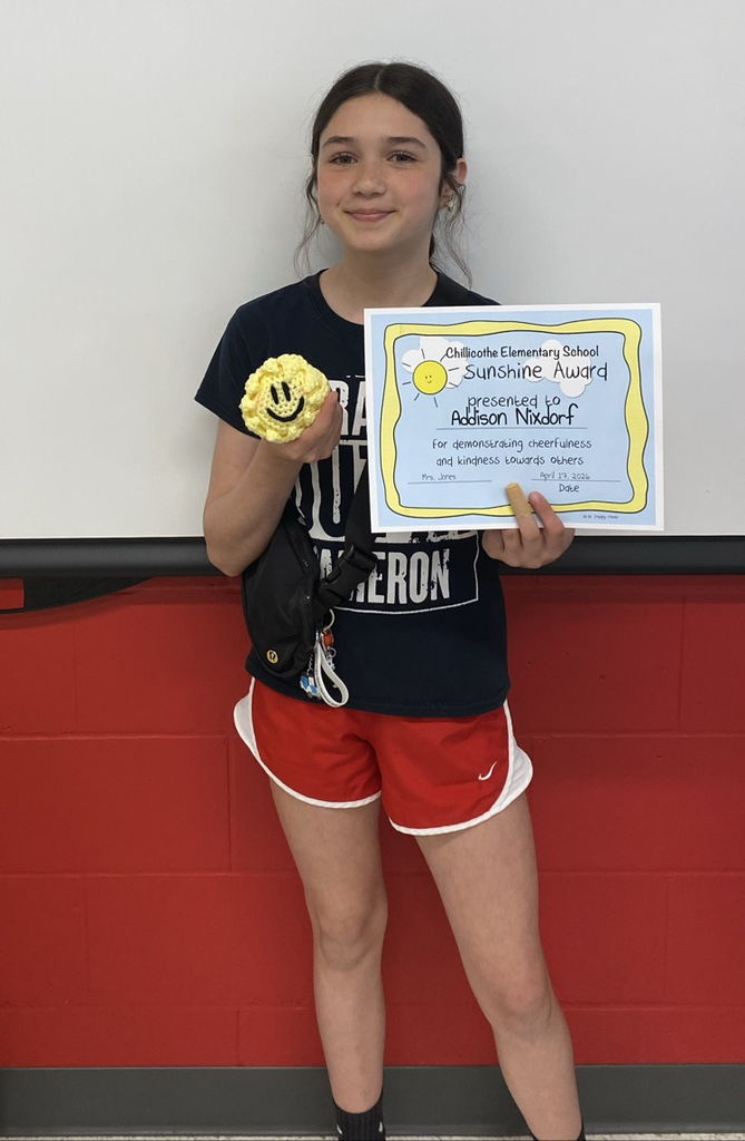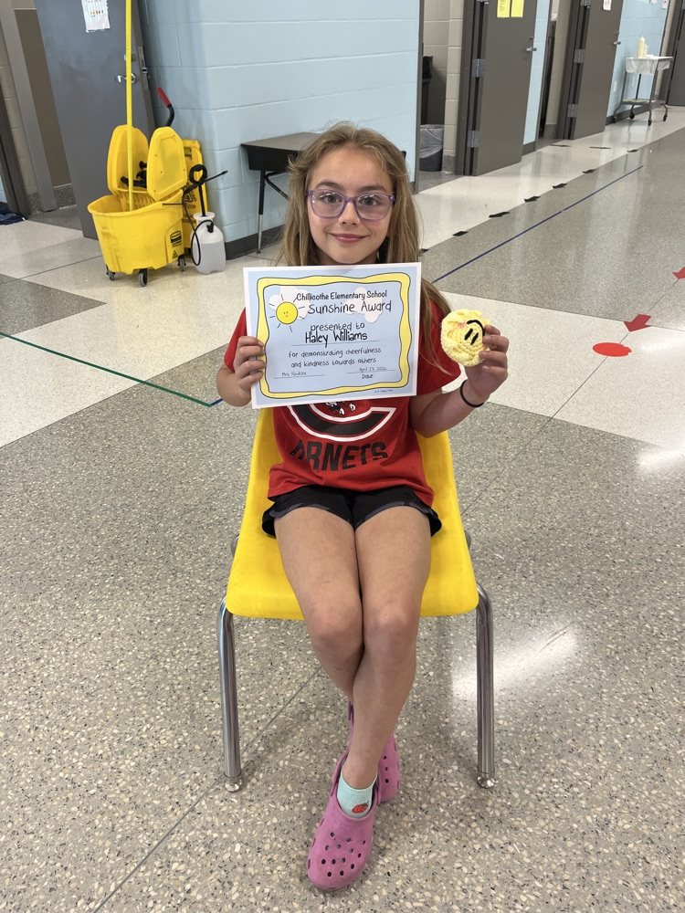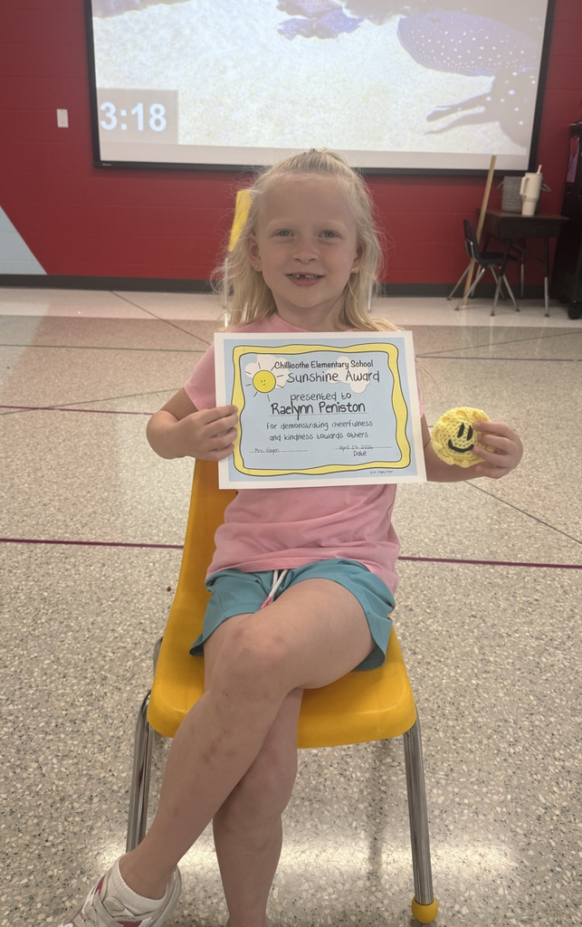 Kindness is everywhere at CES! The three recipients of this week's awards were nominated by a teacher or staff member for showing exceptional kindness. They received a sunshine keepsake and the opportunity to sit in the yellow sunshine chair over the next week to promote kindness throughout CES!
