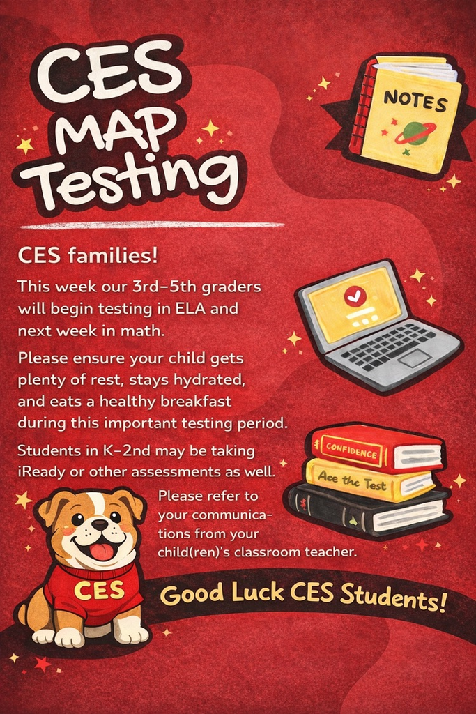 Spring testing is underway at CES! We love seeing our students’ focus, determination, and commitment to doing their best. Testing continues through the end of April, and students are being rewarded with incentives for their hard work—keep it up!