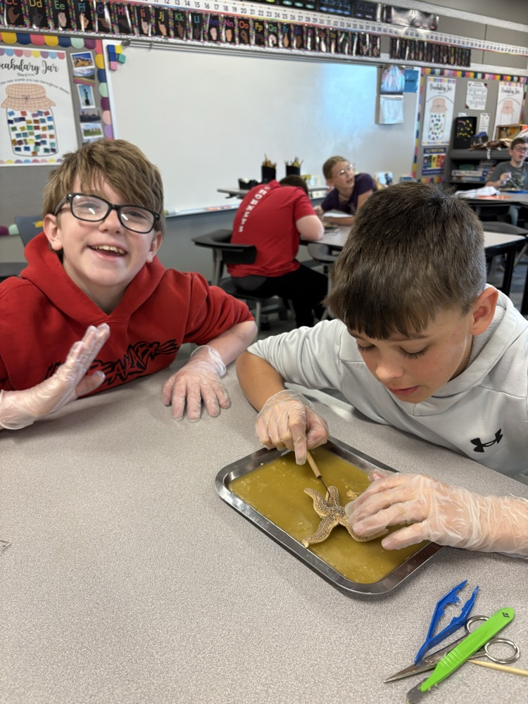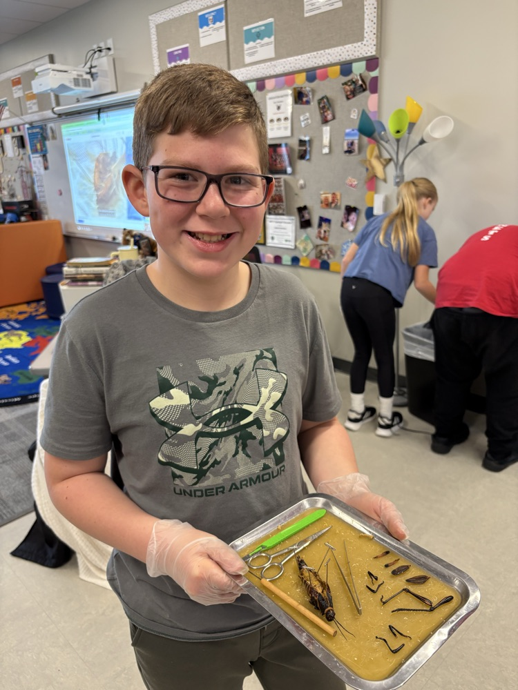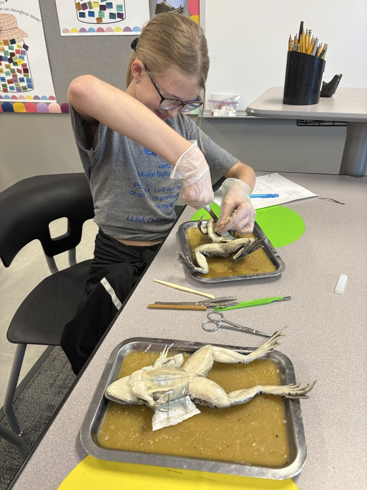 Over the last two weeks, our fifth grade WINGS class dissected 7 small animals to learn about the different body systems & animal classifications. The exploration included an earthworm, starfish, grasshopper, perch, clam, crawfish, & bullfrog.