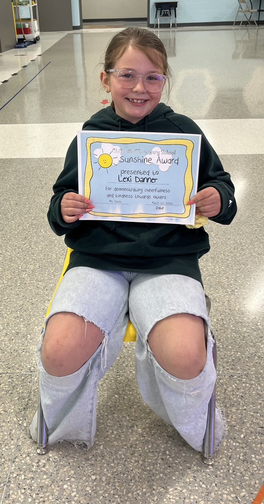 We are proud to honor this student with the Sunshine Award! Although Anniston may be quiet and shy, her kindness shines brightly every day. She is always willing to help others, whether it's offering a gentle hand, sharing supplies, or quietly supporting a classmate who needs a friend. Her caring heart and thoughtful actions make a big difference in our classroom. She leads with kindness, works hard, and brings a warm and positive spirit to our school community. We are so grateful for the sunshine she shares just by being her sweet self!