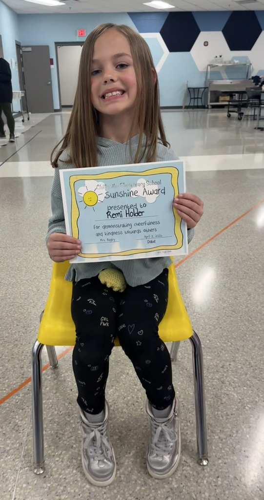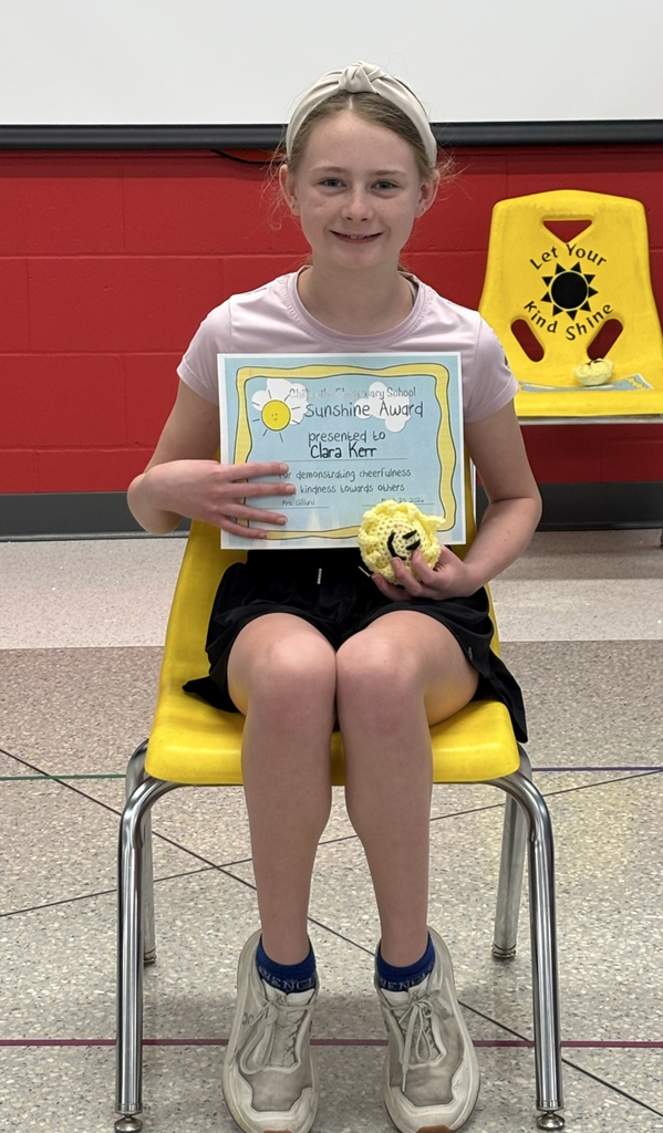 Kindness is everywhere at CES! The three recipients of this week's awards were nominated by a teacher or staff member for showing exceptional kindness. They received a sunshine keepsake and the opportunity to sit in the yellow sunshine chair over the next week to promote kindness throughout CES!