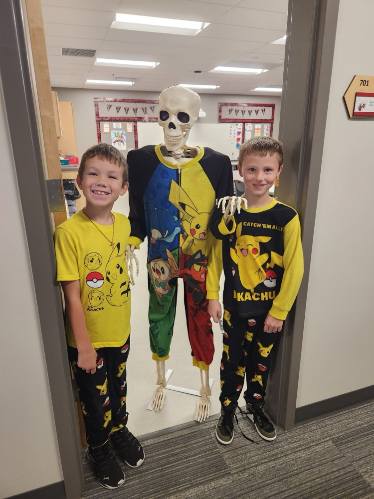 Kicking off Red Ribbon Week in style with "Skelly" the skeleton! 💪 Monday was Favorite Team Jersey Day, and today we rocked our PJs and Checks! 💤 Tomorrow, we’re saying “Peace Out to Drugs” with Tie-Dye Day! 🌈✌️
