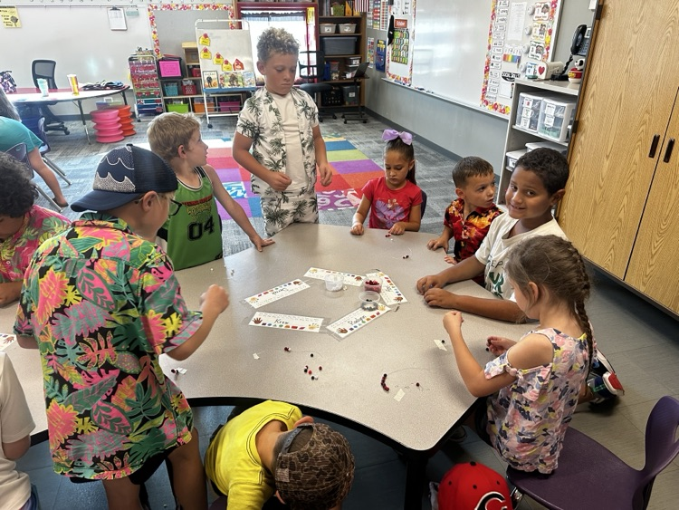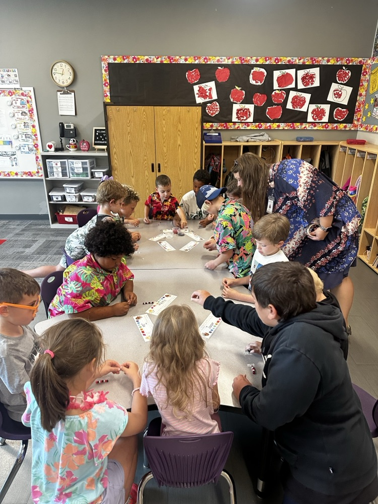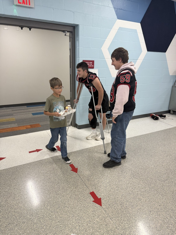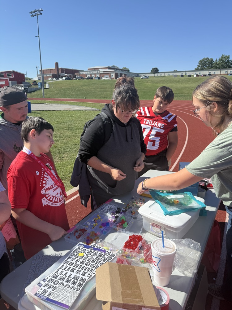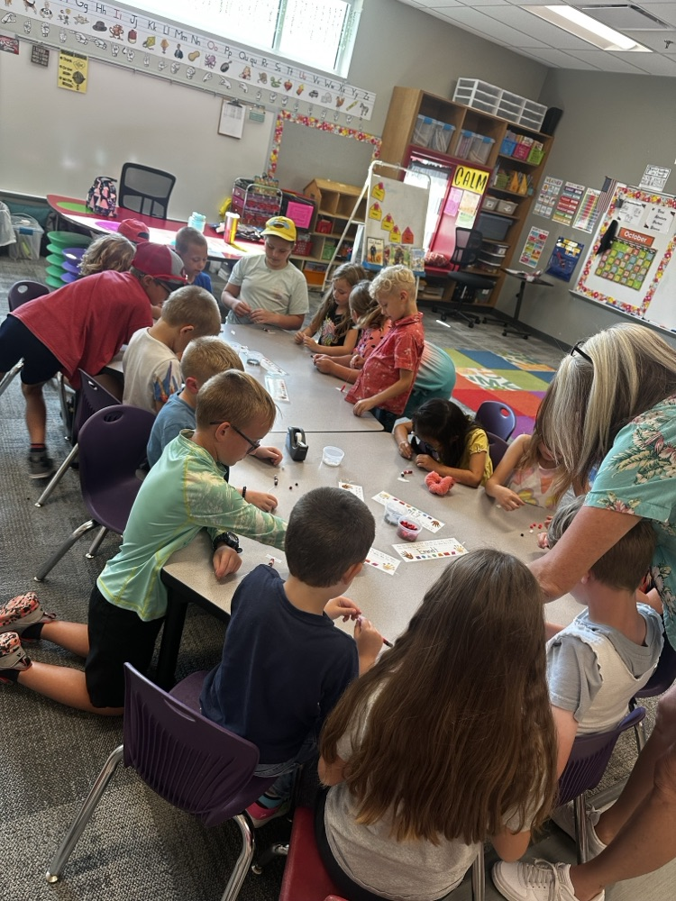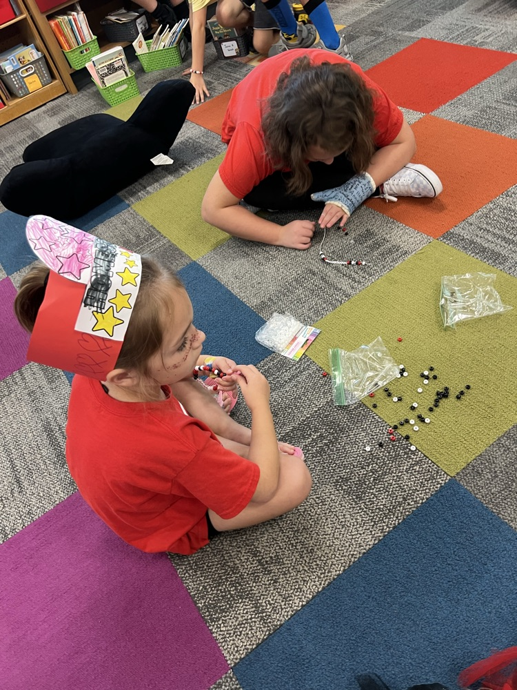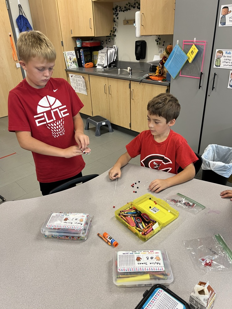 Today, Miss Davis’ 3rd graders teamed up with Mrs. Ewbank’s kindergarteners to make spirit bracelets in celebration of Homecoming